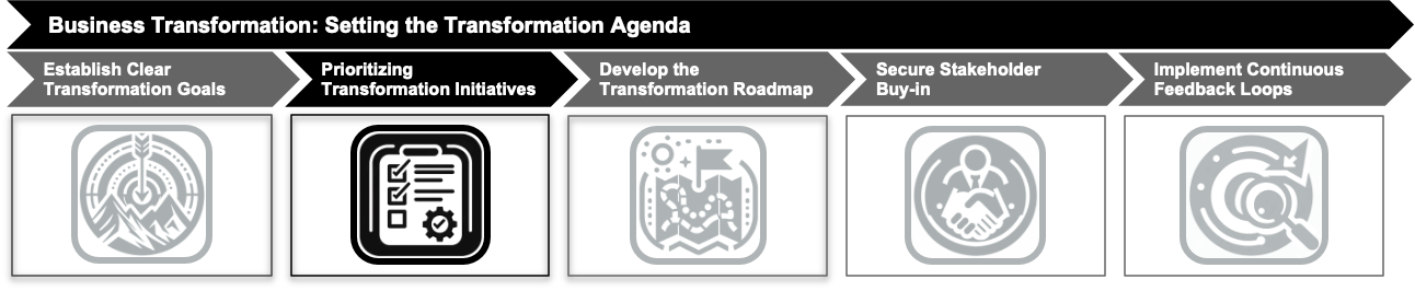 Prioritizing transformation initiatives is a critical step in ensuring the success of a B2B SaaS company's transformation agenda. Given the breadth of possible initiatives, from technology upgrades to organizational culture changes, it's essential to determine which ones will deliver the most significant impact and align best with the company's strategic goals. This prioritization process helps focus resources and efforts on the areas that will drive the most value, preventing the company from spreading itself too thin and losing focus during the transformation journey.