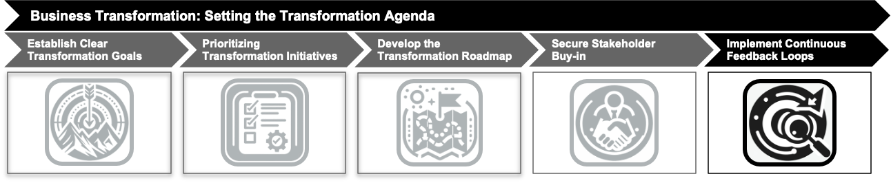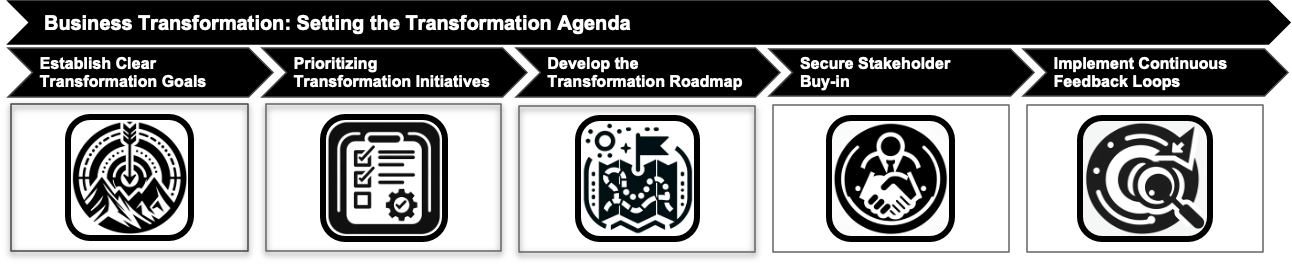 A solid transformation agenda is essential for B2B SaaS companies embarking on business transformation. It serves as a blueprint that outlines clear goals, prioritized initiatives, a comprehensive roadmap, stakeholder engagement strategies, and a system for continuous feedback. By establishing realistic and strategic goals, companies can focus their efforts on initiatives that drive the most impact. Prioritizing these initiatives based on strategic alignment, impact, and feasibility ensures resources are allocated effectively. The transformation roadmap provides structure and guidance, breaking down the transformation into manageable milestones. Engaging stakeholders early fosters buy-in and reduces resistance to change, while continuous feedback loops allow for monitoring progress and making adjustments as needed. This robust approach creates a clear path forward, enabling B2B SaaS companies to adapt to challenges and achieve sustained success in a dynamic industry.
